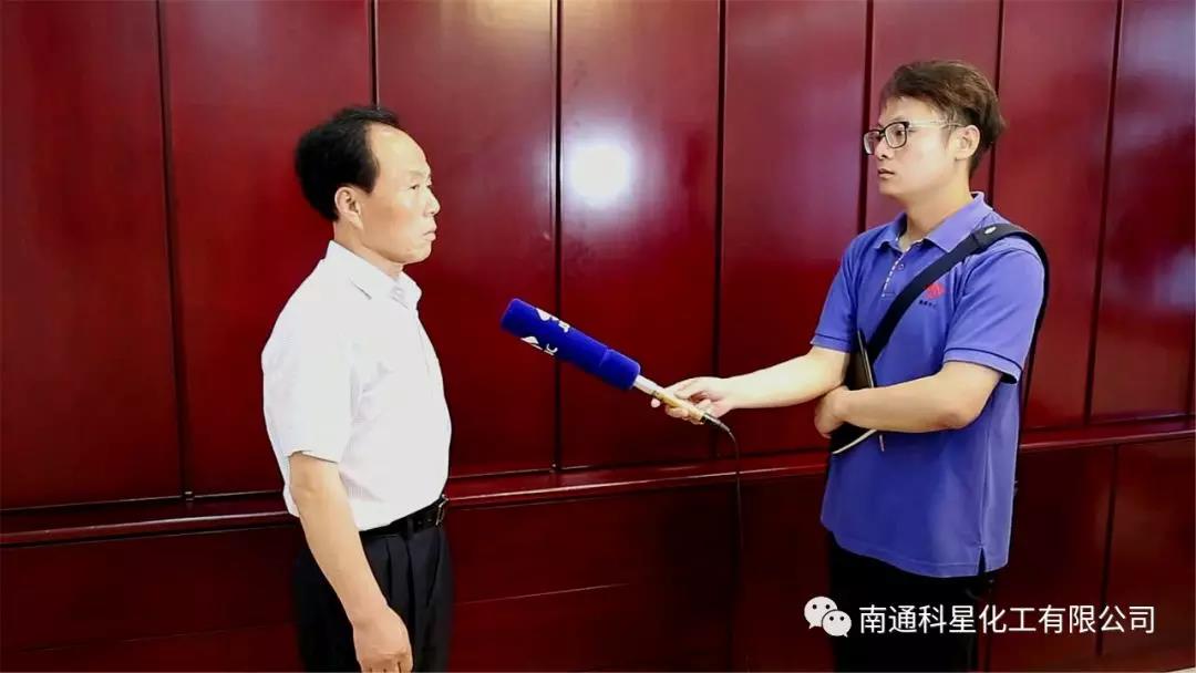 6月上旬,江蘇衛視一行人在縣環保局負責同志的陪同下,來到南通科星化工有限公司進行采訪報道。作為全省263行動中的先進典型,董事長吳龍鐵代表科星化工接受了江蘇衛視的采訪。