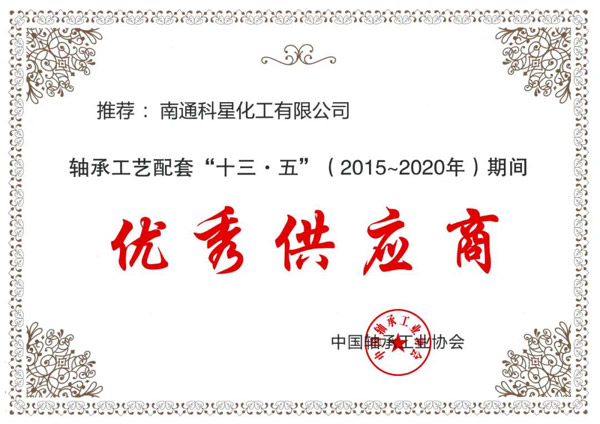 南通科星化工有限公司喜獲中國軸承工業協會“工藝配套優秀供應商”稱號