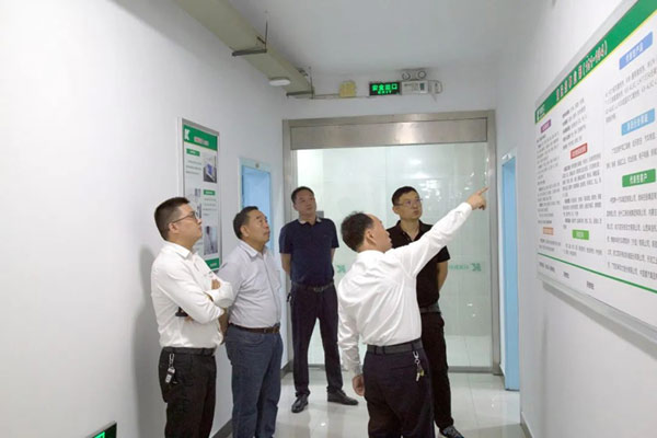 浙江雙環領導一行首先參觀了科星生產基地,詳細了解了生產工藝流程、產品檢驗檢測等情況,并對生產現場的管理高度認可。隨后又來到總部研發中心,科星董事長吳龍鐵向尤總一行介紹了科星實驗室六大事業部和研發儀器設備等相關情況。
